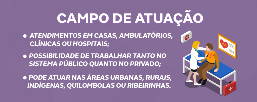 Os especialistas em Medicina da Família e Comunidade fazem atendimentos em casas, ambulatórios, clínicas e hospitais, podendo trabalhar tanto no sistema público quanto no privado, em diferentes cenários: urbanos, rurais, indígenas, quilombolas ou ribeirinhas.
